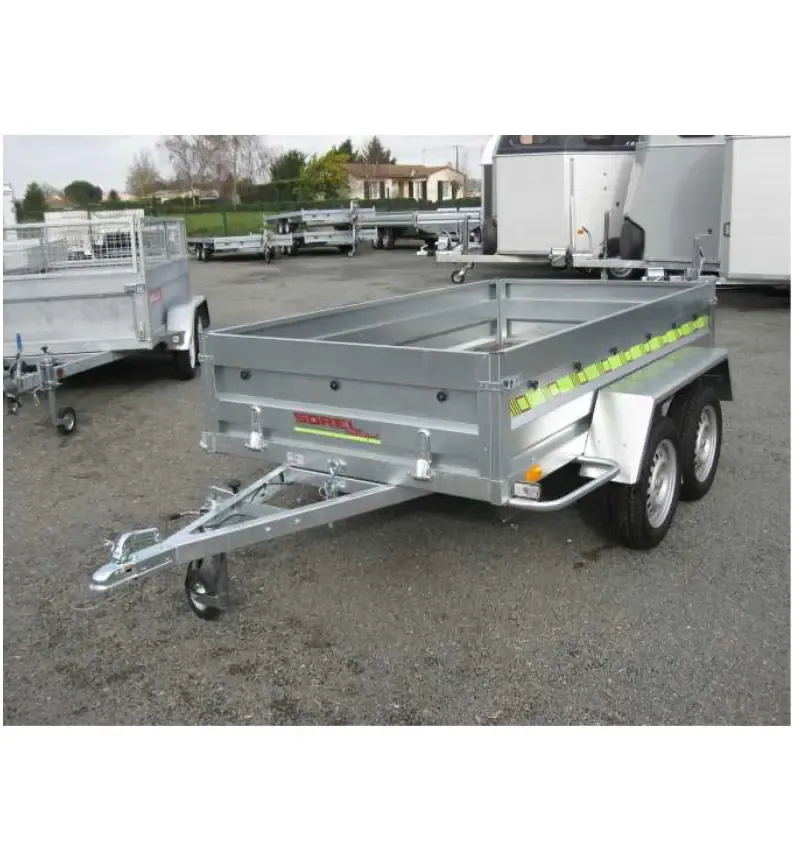 Entre sus ventajas destacan la función basculante para facilitar la carga y descarga, una rampe de luces integrada que asegura visibilidad y seguridad en carretera, y los guardabarros fijados en cuatro puntos del chasis que aportan estabilidad y protección adicional. El remolque también dispone de un plancher de madera antideslizante, 4 anillos de amarre para asegurar la carga de manera eficiente y una rueda jockey de 48 mm de diámetro para facilitar las maniobras.