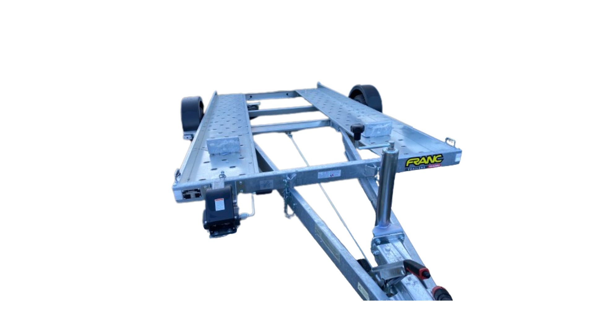 El remolque porta-coches Franc PV13B combina robustez y funcionalidad para un transporte seguro de vehículos. Con PTAC de 1.300 kg (ajustable a 1.200/1.100/1.000/950 o 750 kg) y peso en vacío de 329 kg, cuenta con 1 eje frenado, 2 ruedas 165R13C y chasis en acero galvanizado ensamblado por tornillería.