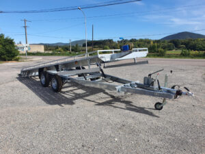 Sus 2 rieles antideslizantes de 48 cm, junto con el basculemento manual mediante 2 pistones de gas, facilitan la carga y descarga de coches. El plateau útil mide 3,60 x 1,80 m, con altura al suelo de 0,45 m, y la remolque incluye luces de 6 funciones, rueda jockey telescópica y toma eléctrica de 13 polos.
