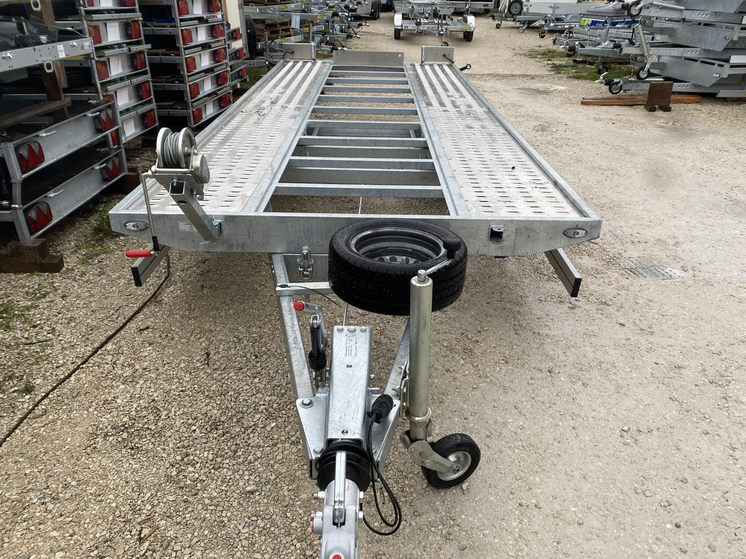 El remolque porta-coches Saturn 500 x 210 cm combina resistencia y funcionalidad para el transporte seguro de vehículos pesados.
